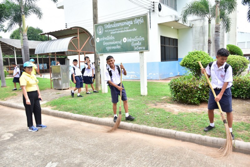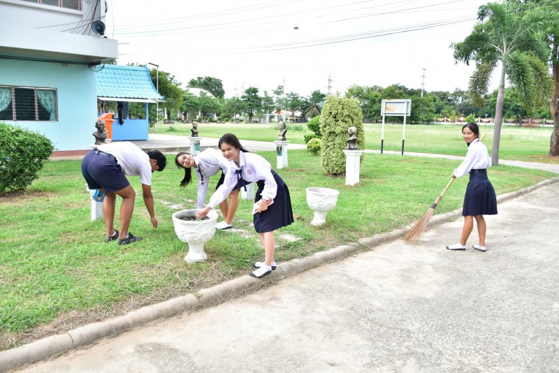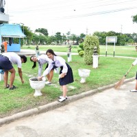 ครู และนักเรียนทุกคนร่วมทำกิจกรรมจิตอาสาบริเวณพื้นที่รับผิดชอบ